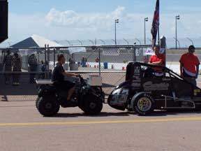 Pushin' 'em out to the track.